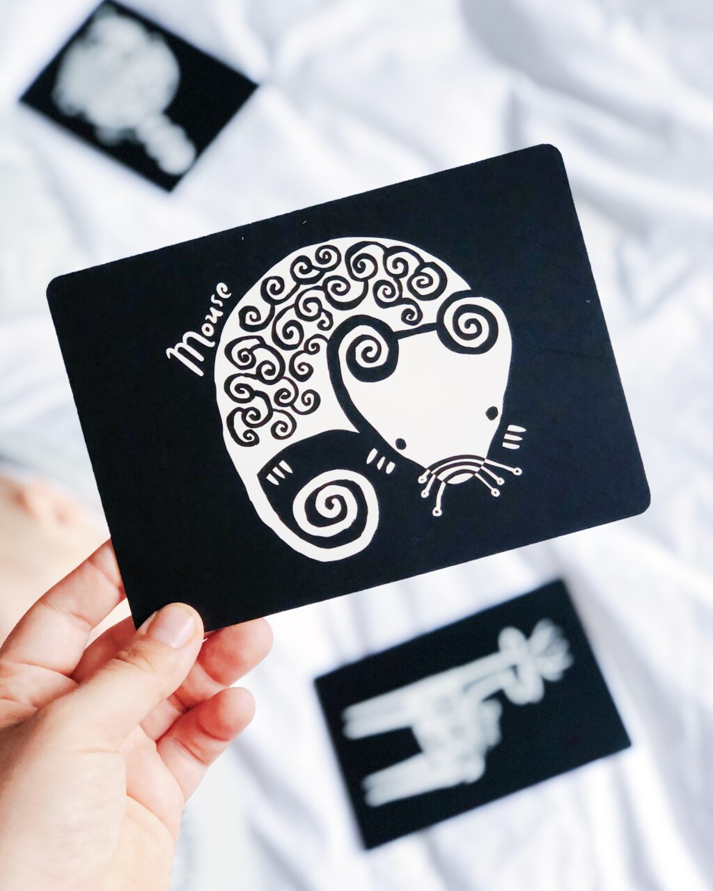Maguk a kártyák egyébként a Wee Gallery Art Card-sorozatának az állatos kiadásához tartoznak: környezetbarát anyagból készült, már-már (baba)dizájntermékek, amikben a legjobb persze nem az, hogy gyönyörűek, hanem hogy hosszú percekig tényleg lekötik Sámuel uraságot!